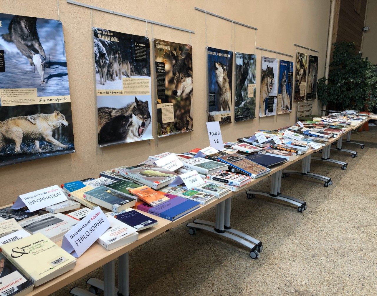 bébés, enfants, ados, adultes avec différents genres d'ouvrage : BD, mangas, romans, albums, polars, documentaires,